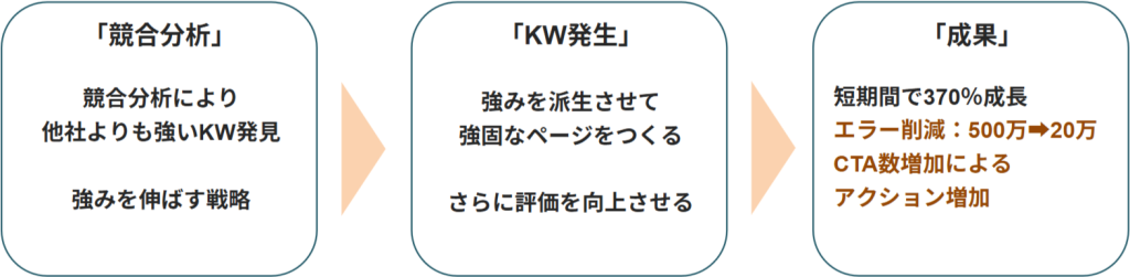 現状取得しているKWから自メディアの強みを見つけ、派生させるように重要KWを対策。